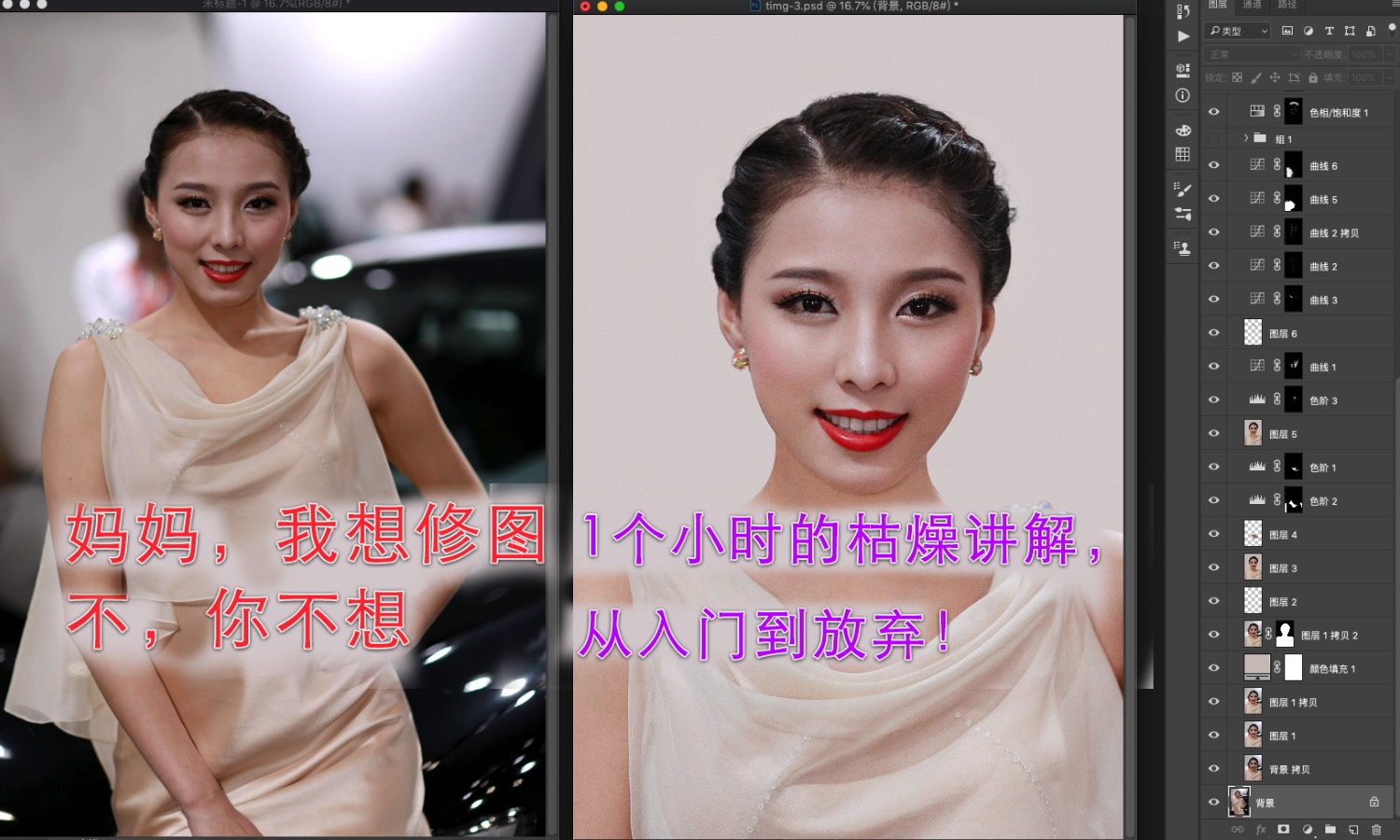 整个操作可以说跟现在职业修图师的操作流程差距不大,可能也就是我有些地方不太规范而已,如果你能够看完我的这个视频就可以了解如何处理一张图片了。